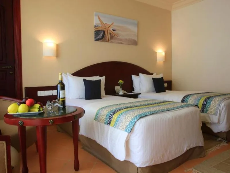 JAZ Royal Palmariva Located in Makadi Bay, only a few minutes’ drive from the Makadi and Soma Bay golf course, overlooking its own pristine private beach featuring freshwater swimming pools, salt water pool, kids pool, mini club, children’s playground and spa. The rooms are contemporary with balcony or terrace overlooking garden, pool, and beach. All rooms are fitted with modern furnishings and have a television with satellite TV channel, safe box, and minibar. JAZ Royal Palmariva offers an array of restaurants and the unique Food Promenade which features amazing dining outlets: Greek outlet “ Taverna Paros”, “Rock & Roll Burger House”, Oriental outlet “Café Cairo” and Gelateria “Giardino Delle Rose”, Cuban “Pequena Habana” and “Yum Asian Kitchen & Bar”. An endless variety of activities awaits with windsurfing, water sports, kayak, canoeing, squash, archery, tennis court and many more activities combined with well-equipped gym free of charge, diving and horse riding with extra charge. Guest can enjoy at the spa which includes relaxation treatments, massages, relaxation programs, steam room, Jacuzzi and beauty services with an extra charge.