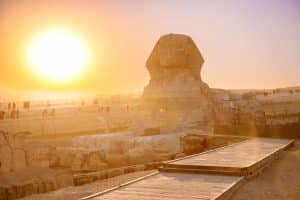 Then, Wander amid Giza Pyramids Plateau until arriving at where the majestic funeral of King Khafre launched in the Valley Temple. And then to The Great Statue of Sphinx.