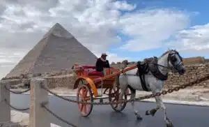 Experience a 30-minute camel or horse ride across the desert sands, offering a perfect photo opportunity with the Pyramids in the background.
