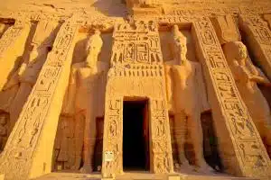 Early morning drive to Abu Simbel — an awe-inspiring site carved into a mountain by Ramses II, featuring colossal statues and a unique solar alignment phenomenon.
