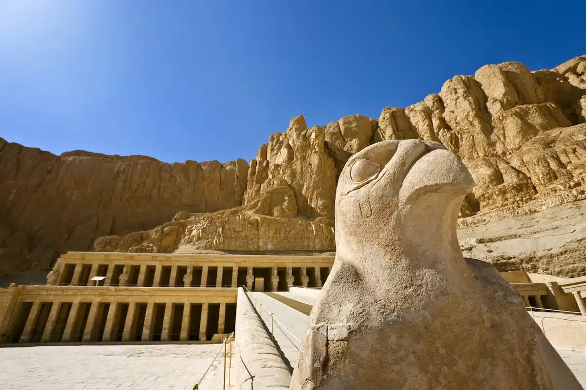 Visit the Temple of Hatshepsut in Deir el-Bahri and see giant statues from the 18th Dynasty